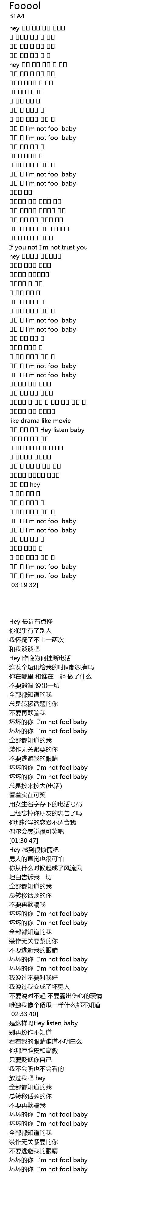 | [03:12.01] | I' m not fool baby |