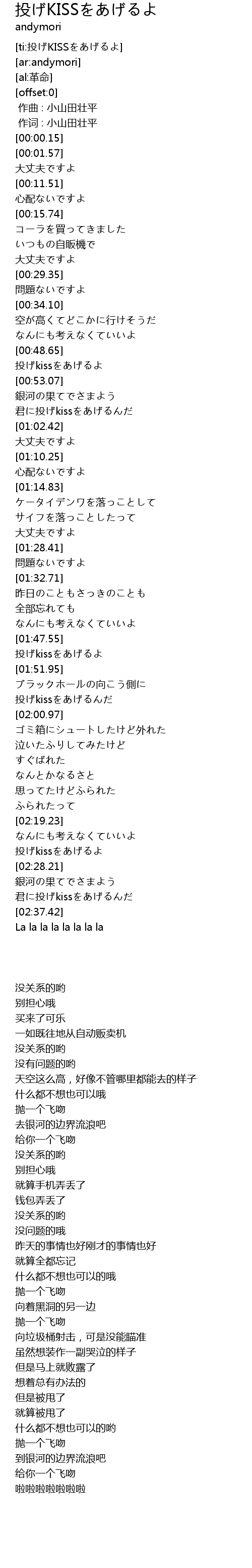 | [01:57.02] | 投げkissをあげるんだ |