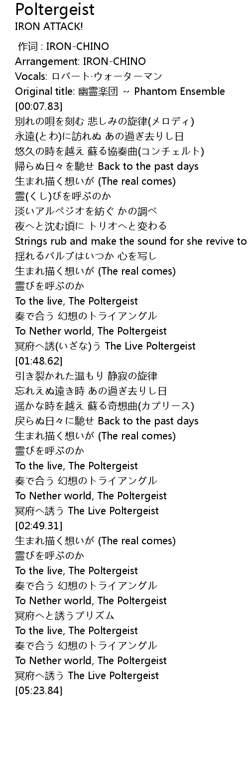 | [05:18.61] | 冥府へ誘う The Live Poltergeist |