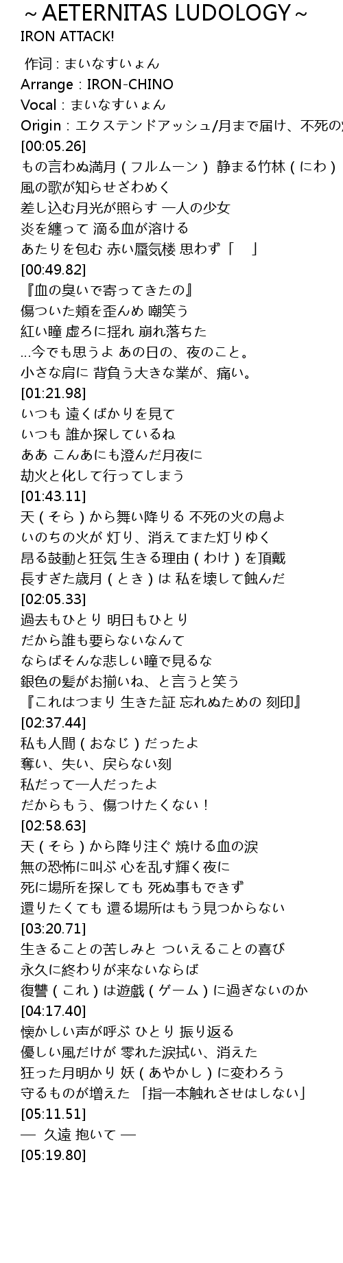 | [00:04.01] | Origin:エクステンドアッシュ/月まで届け、不死の煙 |