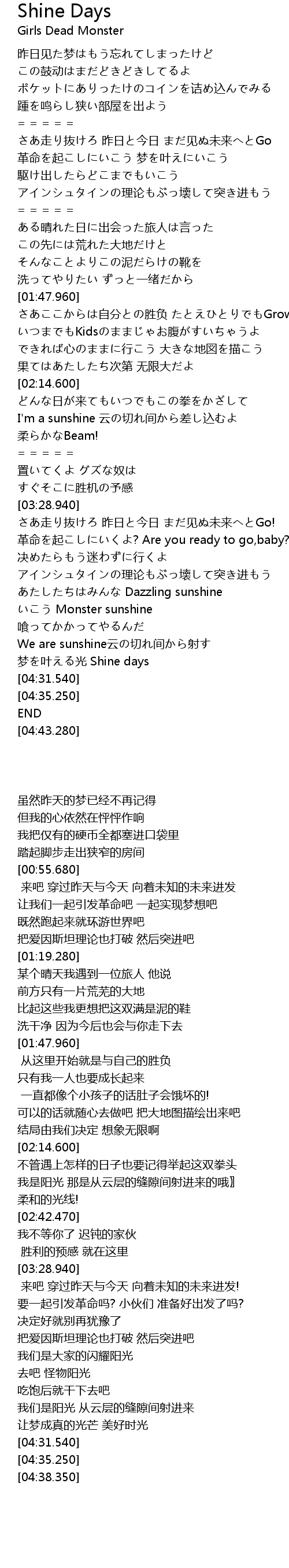 | [02:26.780] | I' m a sunshine yun qie jian cha ru |