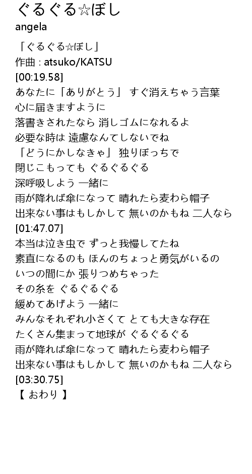 | [00:01.58] | 「ぐるぐる☆ぼし」 |