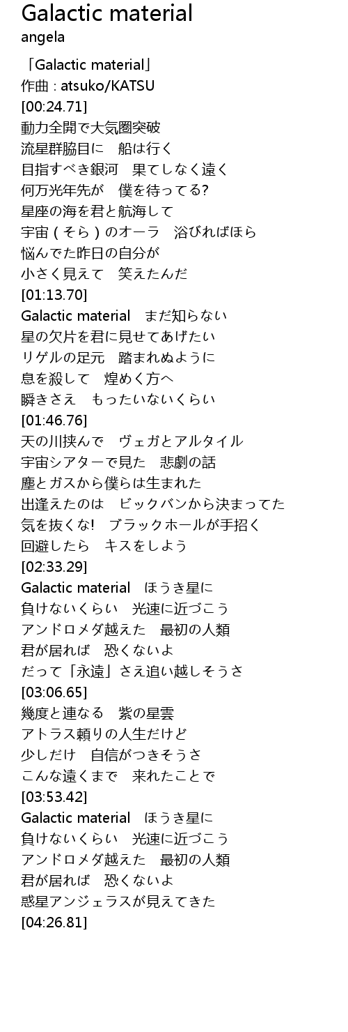 | [00:01.71] | 「Galactic material」 |