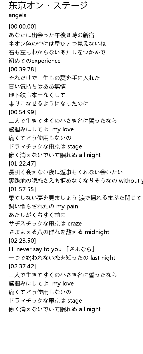 | [00:14.14] | あなたに出会った午後8時の新宿 |