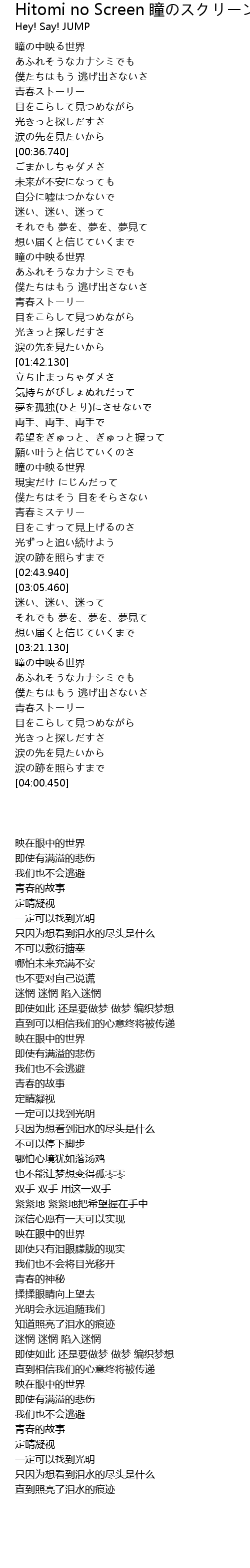 | [03:30.310] | 僕たちはもう 逃げ出さないさ |