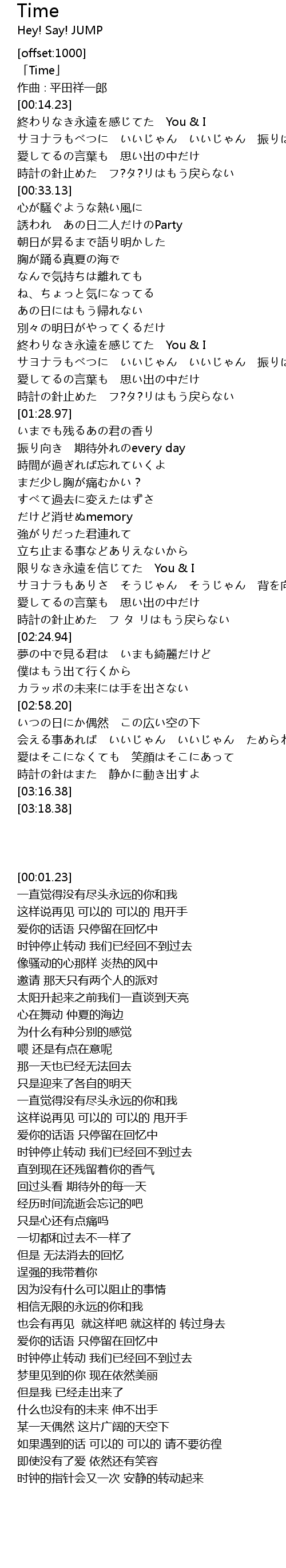 | [02:20.47] | 時計の針止めた フ タ リはもう戻らない |