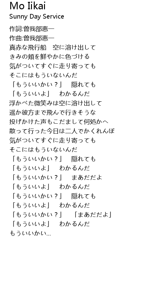 | [03:24.25] | 「もういいかい?」 「まあだだよ」 |