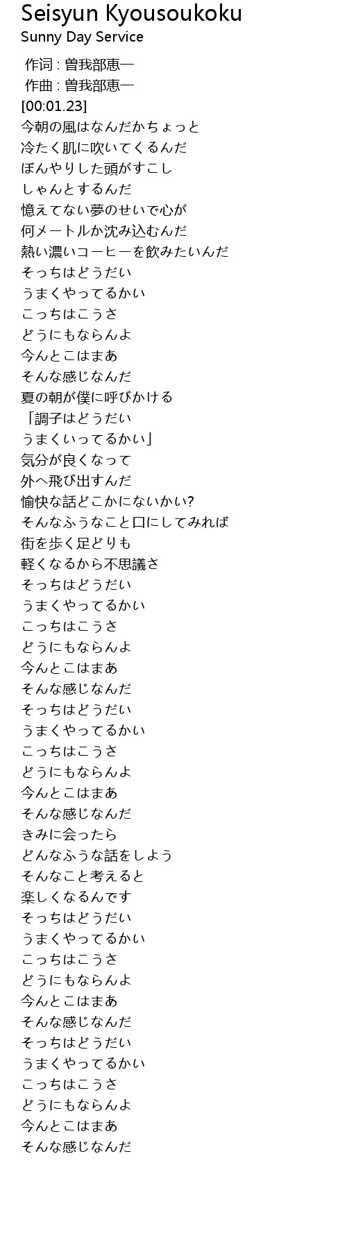 | [00:00.14] | 作词 : 曽我部恵一 |