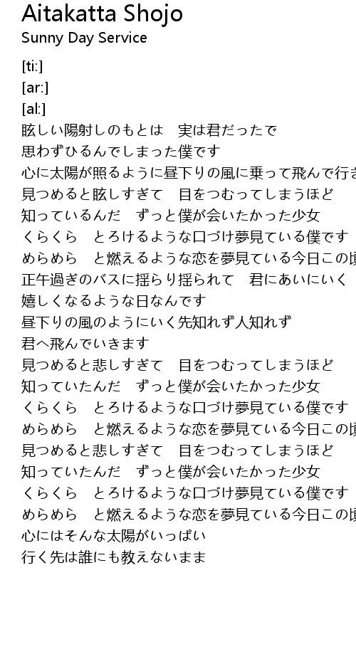 | [00:18.50] | 心に太陽が照るように昼下りの風に乗って飛んで行きます |