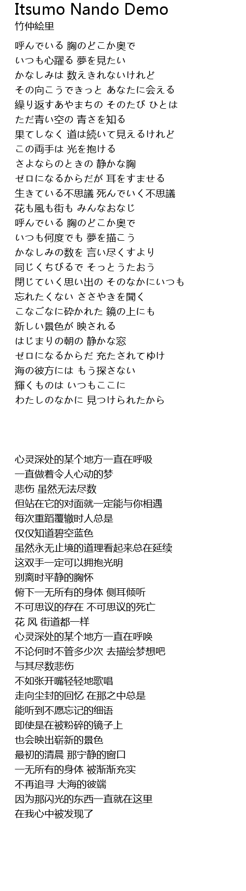 | [00:41.050] | 果てしなく 道は続いて見えるけれど |