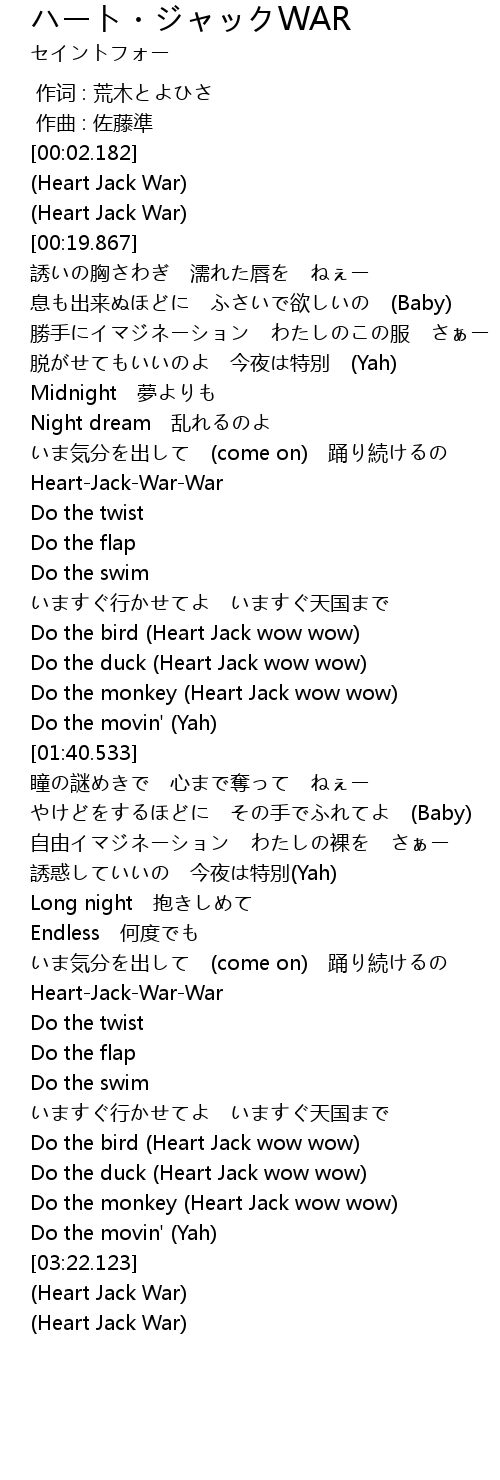 | [03:15.462] | Do the monkey (Heart Jack wow wow) |
