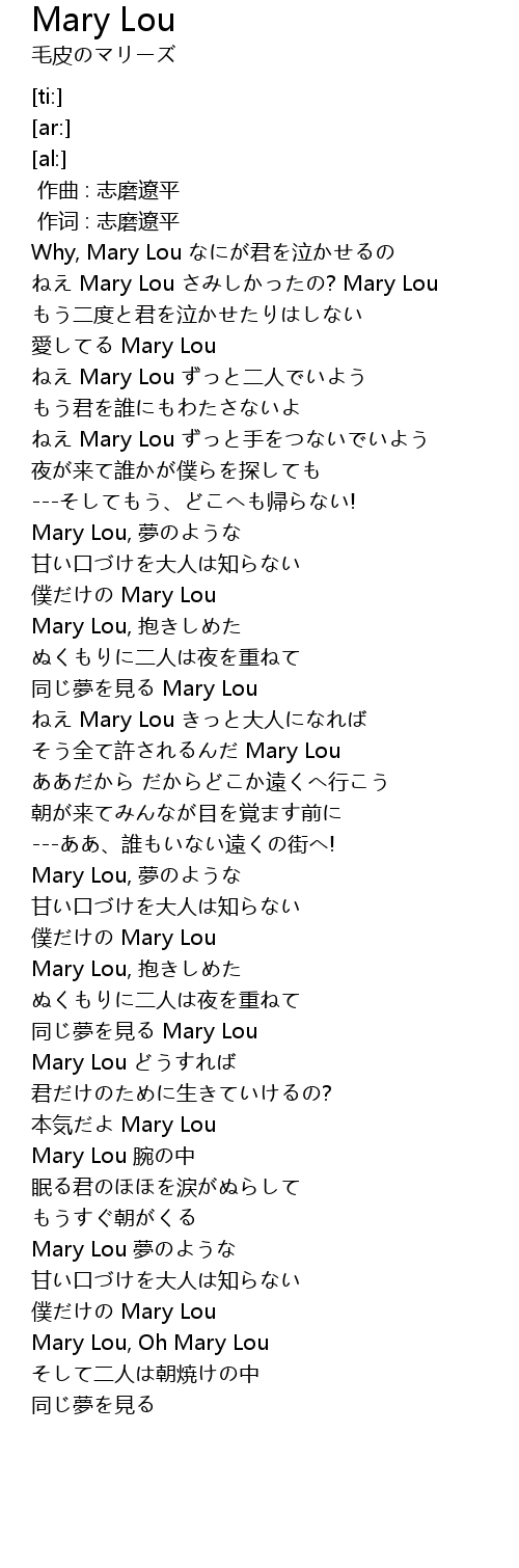 | [00:02.20] | Why, Mary Lou なにが君を泣かせるの |
