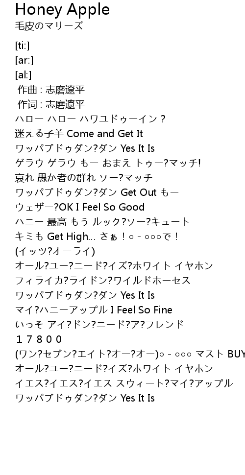 | [01:54.60] | マイ?ハニーアップル I Feel So Fine |