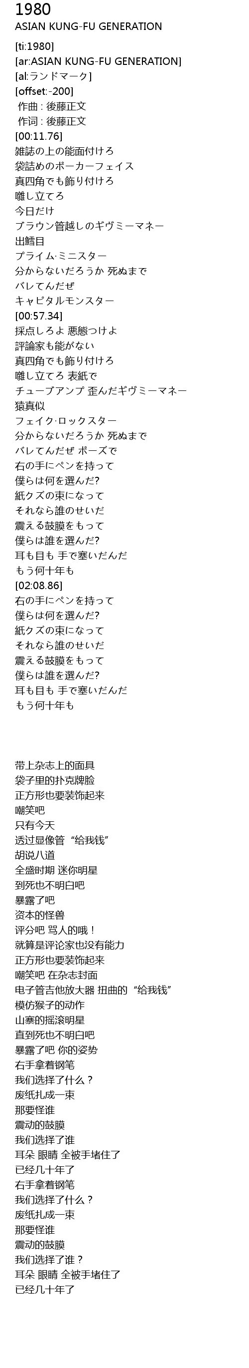 | [01:11.45] | 採点しろよ 悪態つけよ |