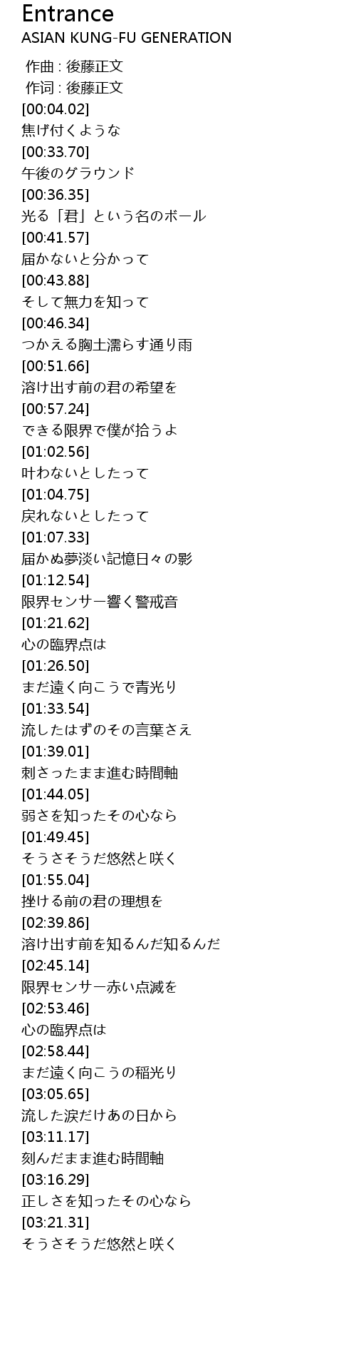 | [00:01.00] | 作词 : 後藤正文 |