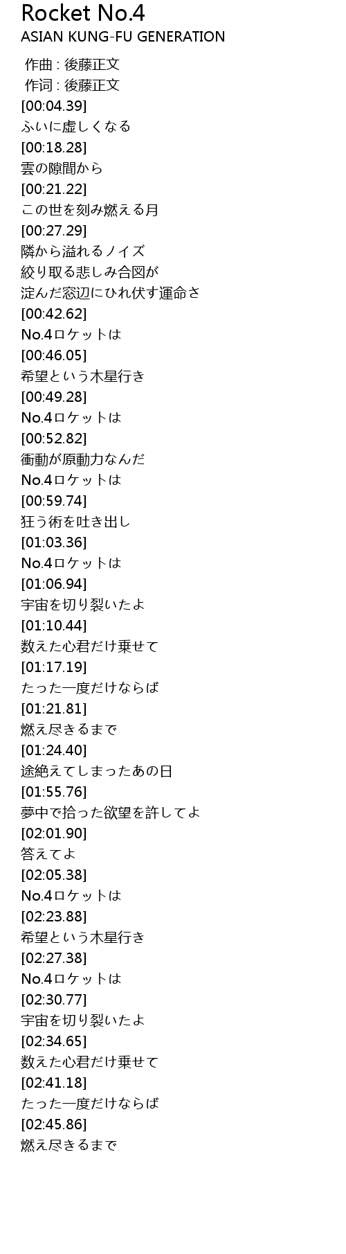 | [02:31.71] | 宇宙を切り裂いたよ |