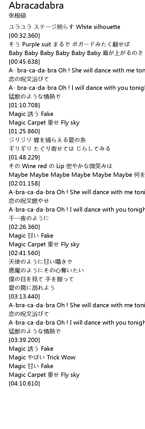 | [00:58.688] | A- bra-ca-da-bra Oh ! I will dance with you tonight |