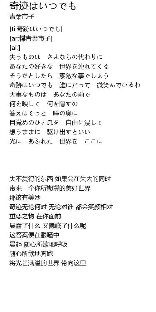 奇跡はいつでも 誰にだって 微笑んでいるわ |