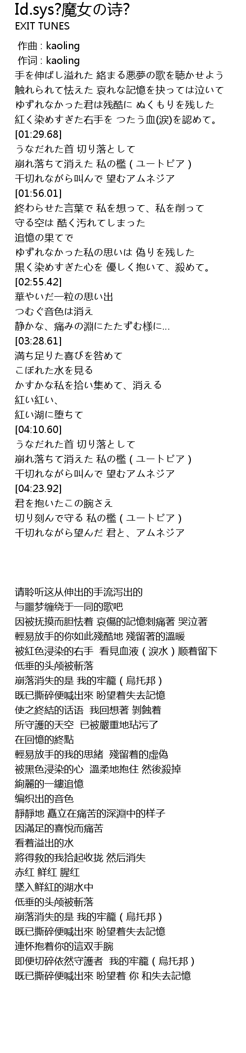 | [04:14.51] | 崩れ落ちて消えた 私の檻(ユートピア) |