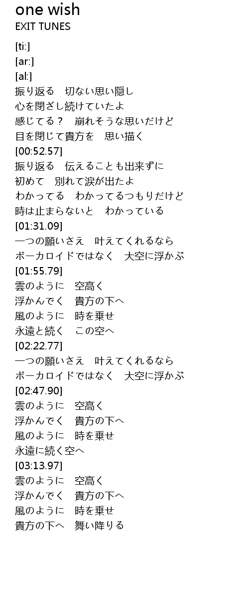 | [02:23.46] | 一つの願いさえ 叶えてくれるなら |