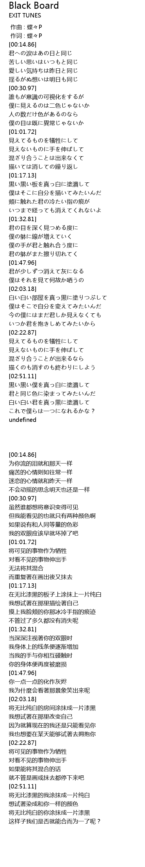 | [00:00.00] | 作曲 : 蝶々P |