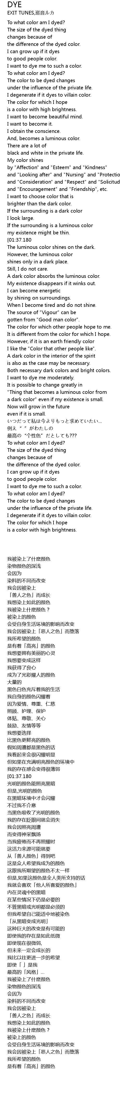 | [03:17.180] | To what color am I dyed? |