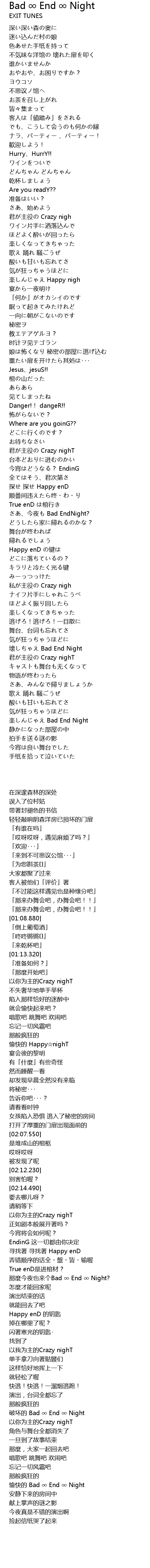 | [02:35.460] | さあ、今夜も Bad EndNight? |