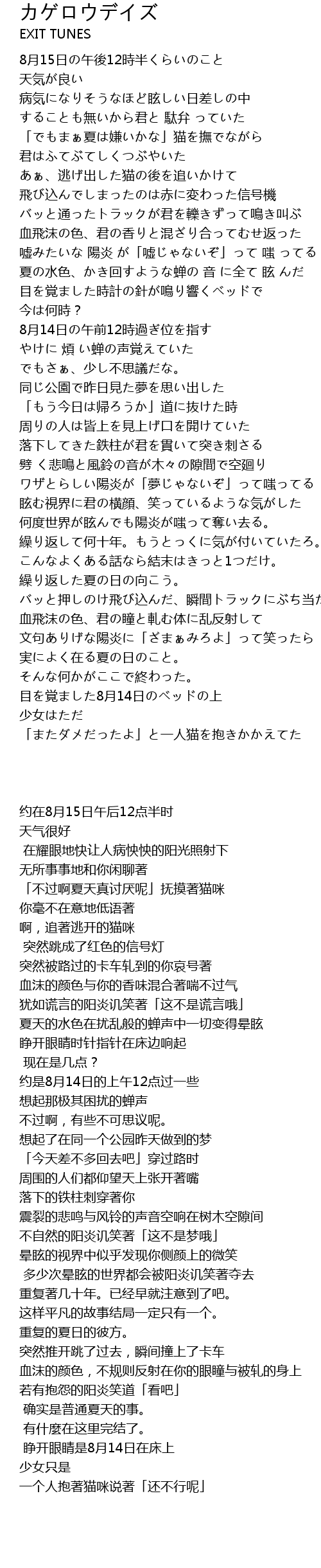 | Song | カゲロウデイズ |