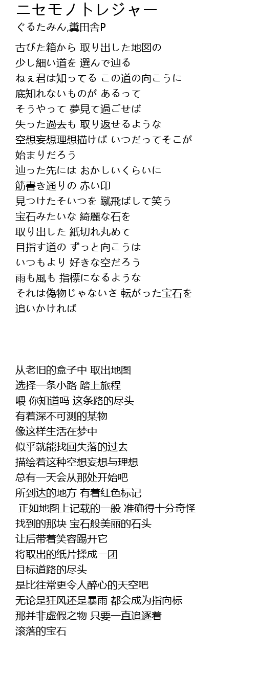 | [02:11.35] | それは偽物じゃないさ 転がった宝石を |