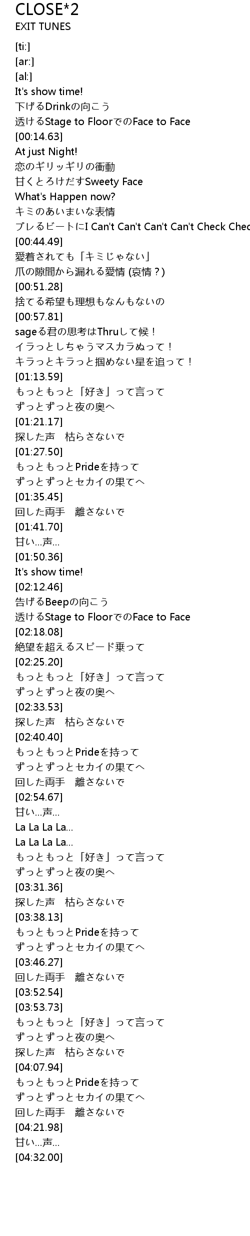 | [02:41.24] | もっともっとPrideを持って |