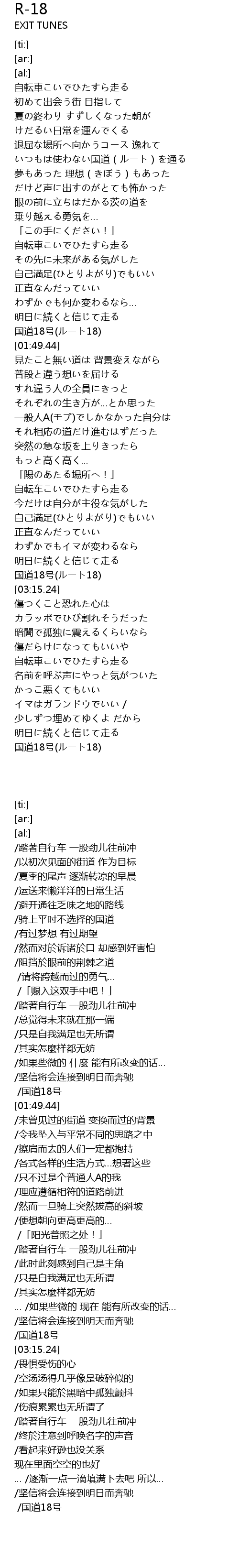 | [00:45.94] | 退屈な場所へ向かうコース 逸れて |