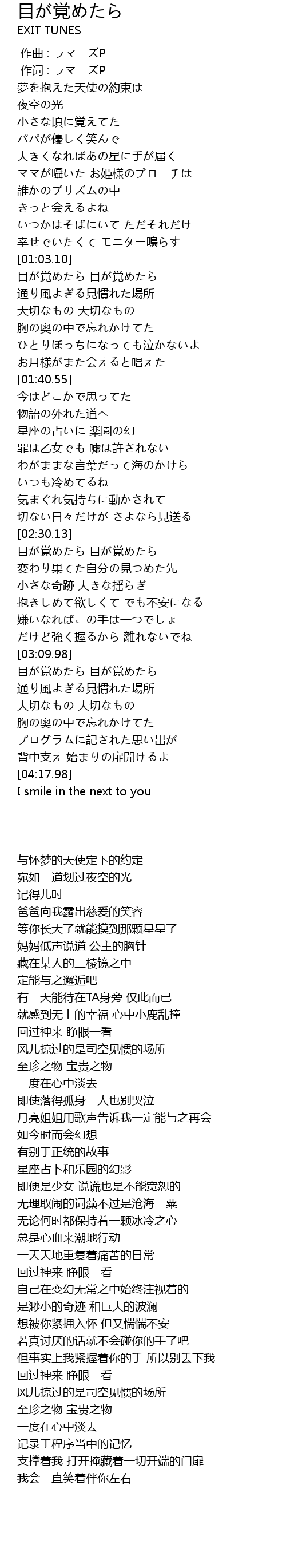 | [01:04.31] | 目が覚めたら 目が覚めたら |