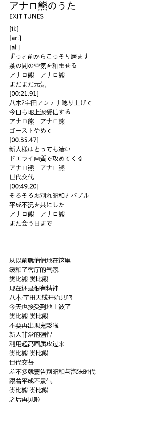 | [00:42.46] | アナロ熊 アナロ熊 |