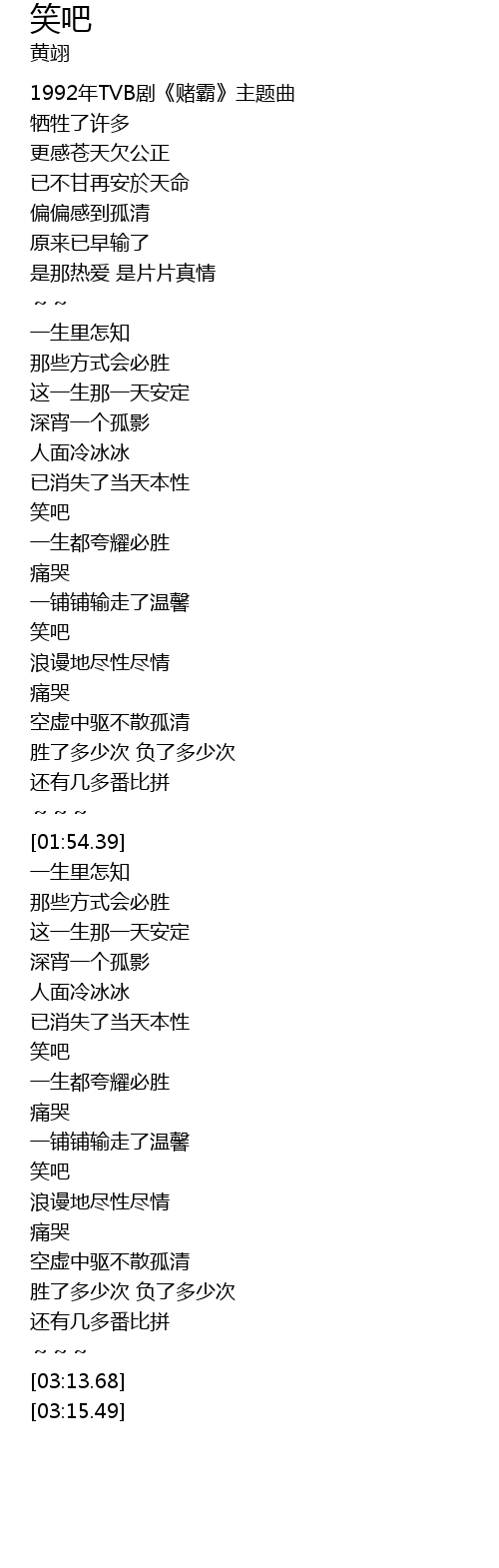 | [00:03.54] | 1992年TVB剧《赌霸》主题曲 |