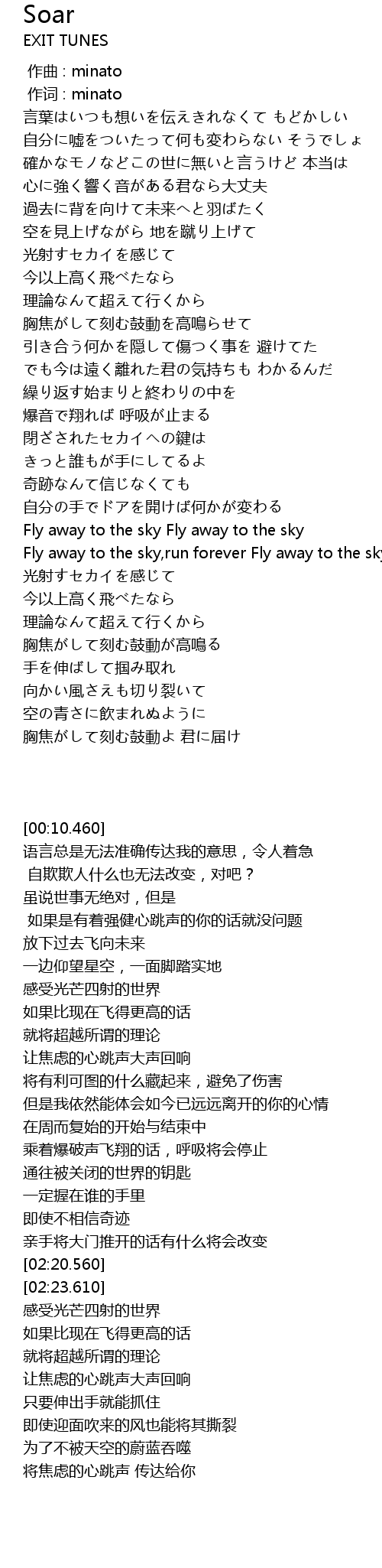 | [02:20.560] | Fly away to the sky Fly away to the sky |