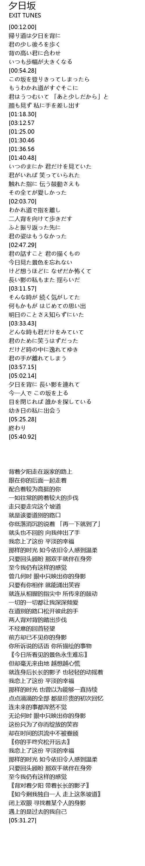| [05:03.14] | 夕日を背に 長い影を連れて |