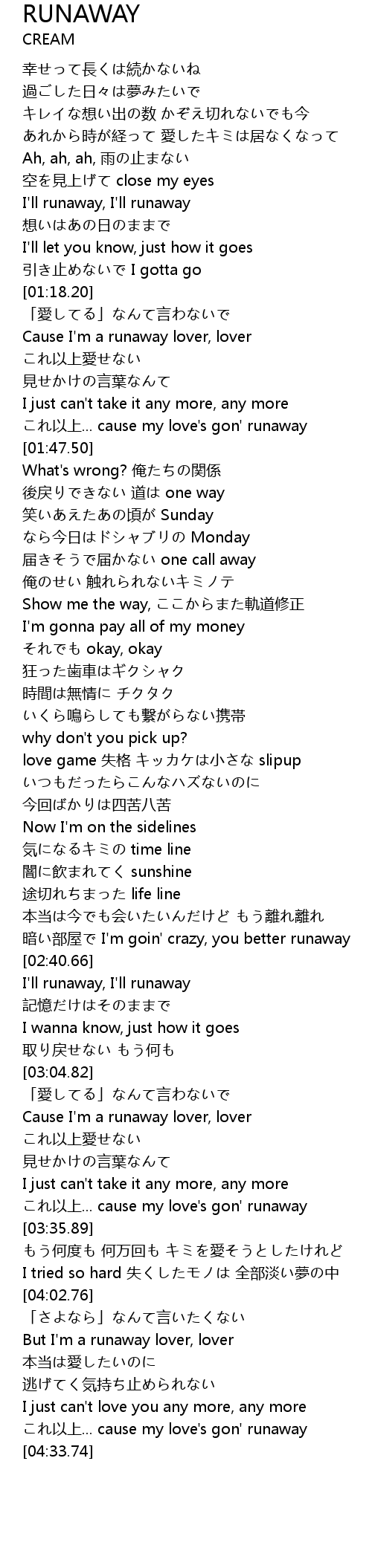 | [03:11.78] | Cause I'm a runaway lover, lover |