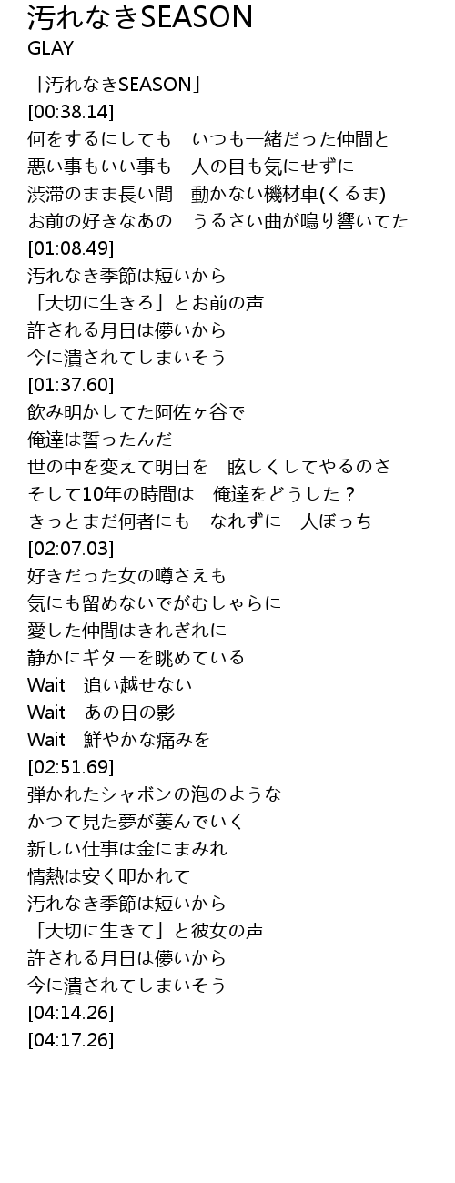 | [00:01.14] | 「汚れなきSEASON」 |