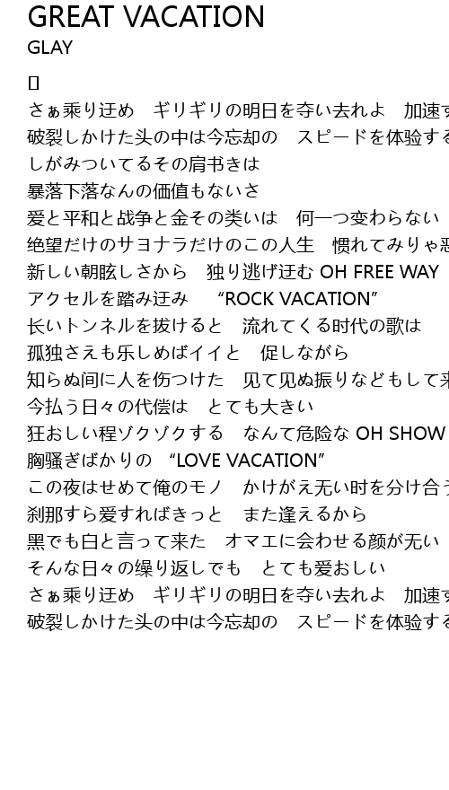 | Song | GREAT VACATION |
