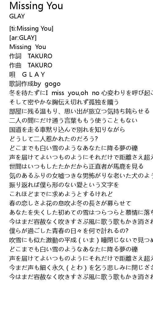 | [ti:Missing You] | |
