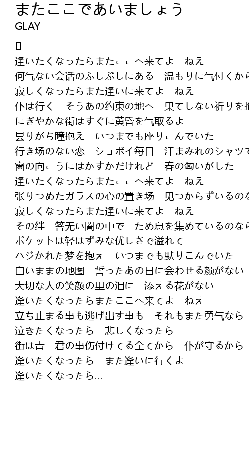 | 逢いたくなったらまたここへ来てよ ねえ | |