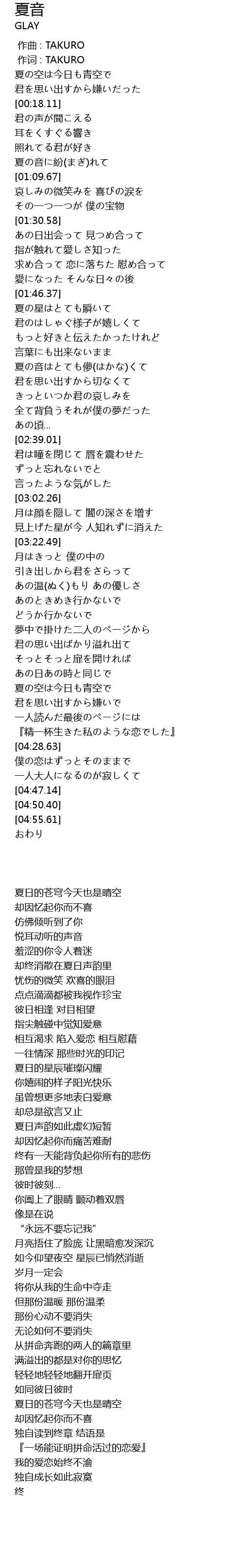 | [00:00.00] | 作曲 : TAKURO |