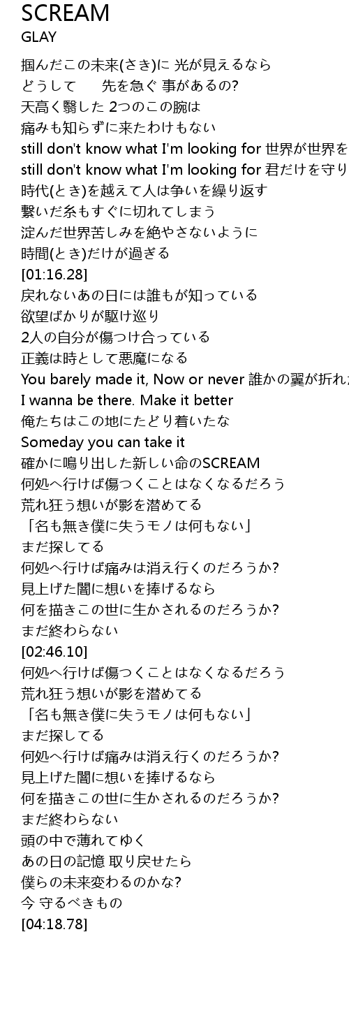 | [01:52.27] | You barely made it, Now or never 誰かの翼が折れたあの日 |