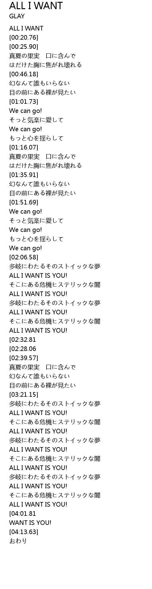 | [03:29.49] | ALL I WANT IS YOU! |