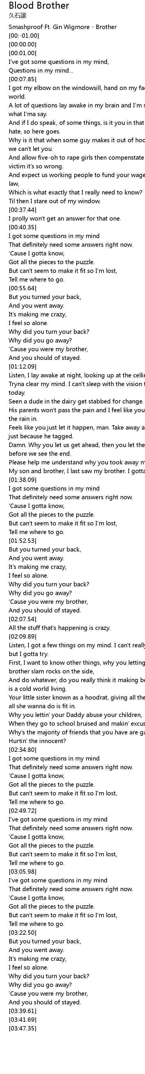 [01:35.38] My son and brother, I last saw my brother. I gotta know.