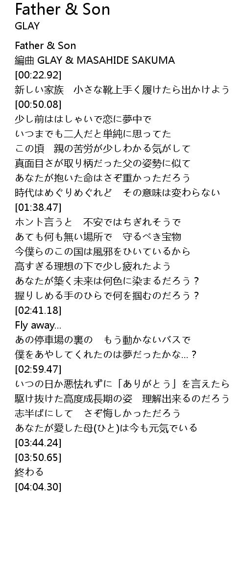 | [00:19.12] | 編曲 GLAY & MASAHIDE SAKUMA |