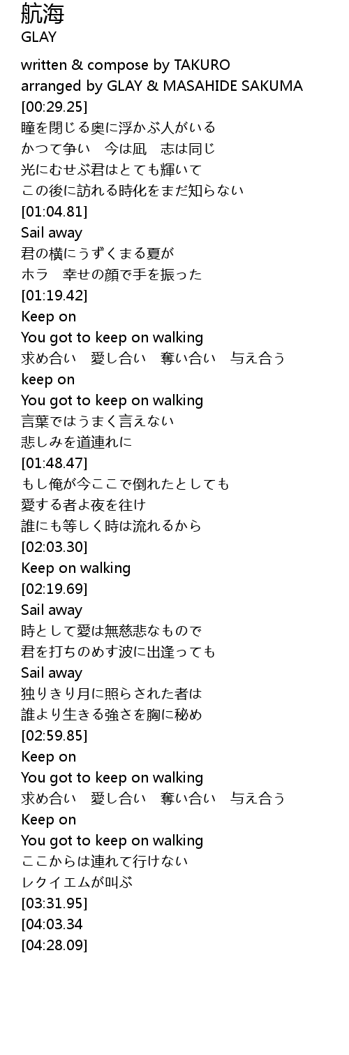| [02:16.72] | Keep on walking |