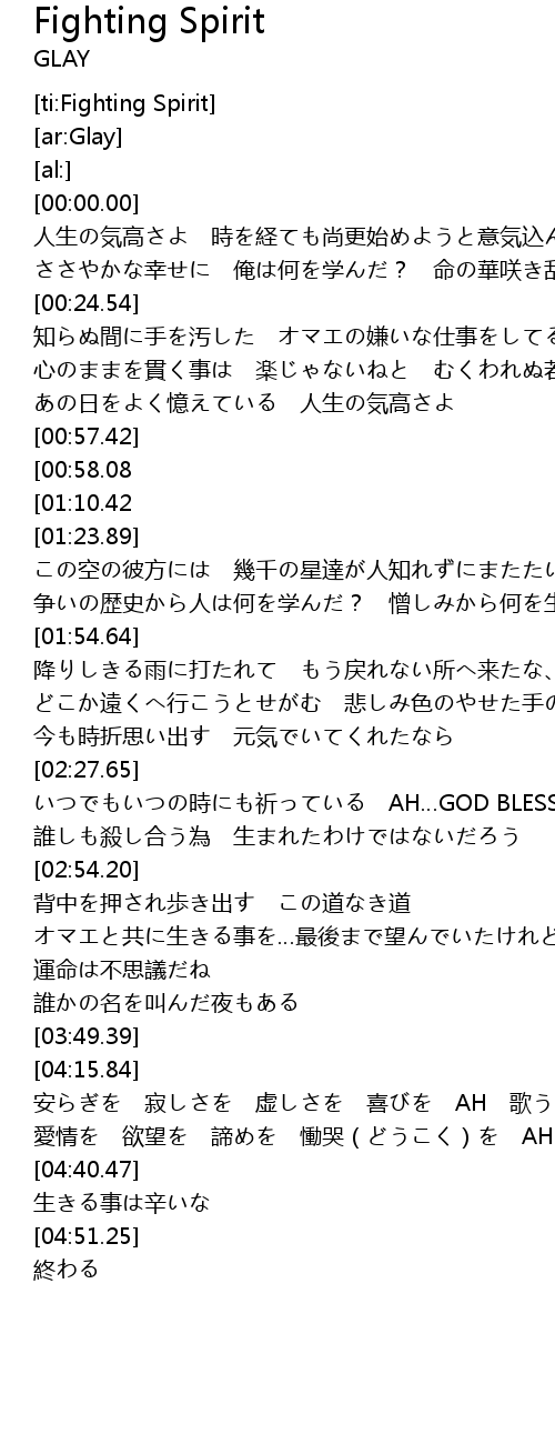 | [02:28.31] | いつでもいつの時にも祈っている AH…GOD BLESS YOU |