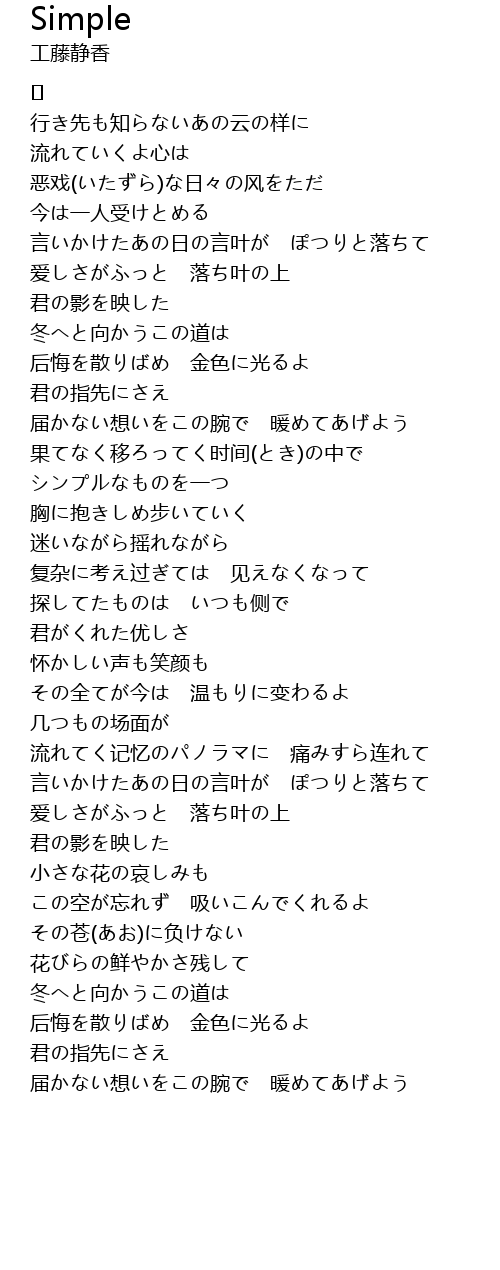 | 复杂に考え过ぎては 见えなくなって | |