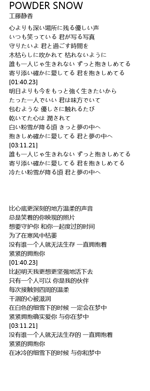 | [03:54.52] | 冷たい粉雪が降る頃 君と夢の中へ |